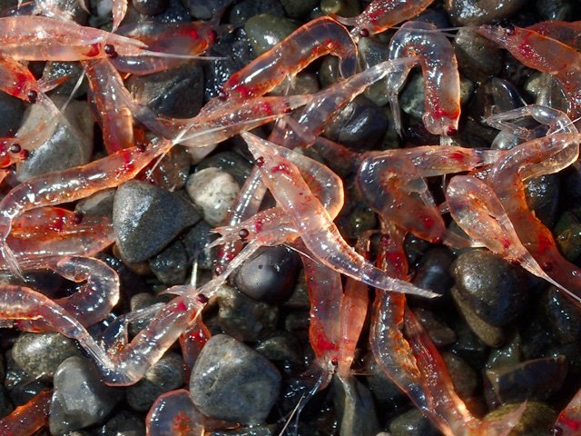 海中でも水面付近をたくさん泳ぎ回っていましたが、サクラエビ科のエビらしい優雅な泳ぎ方とはぜんぜん違いますね。