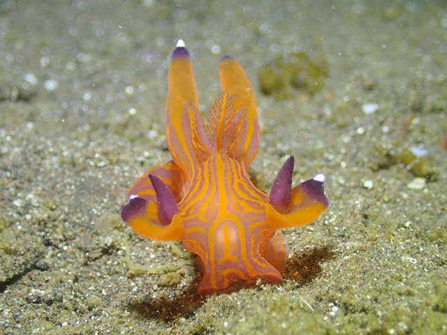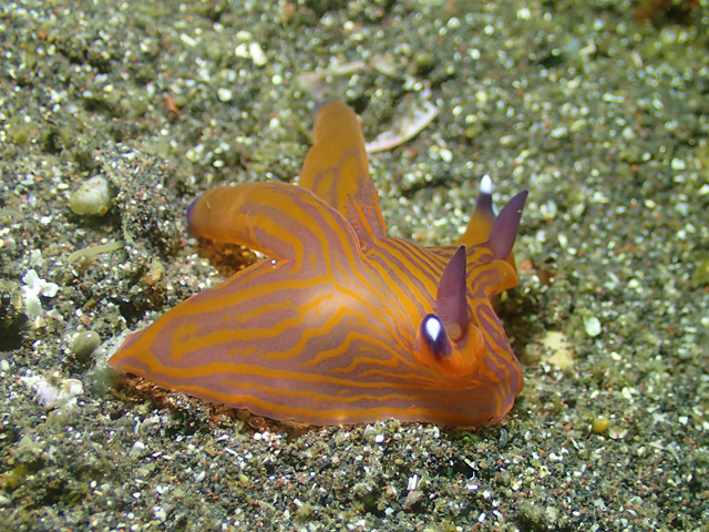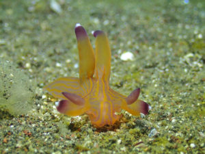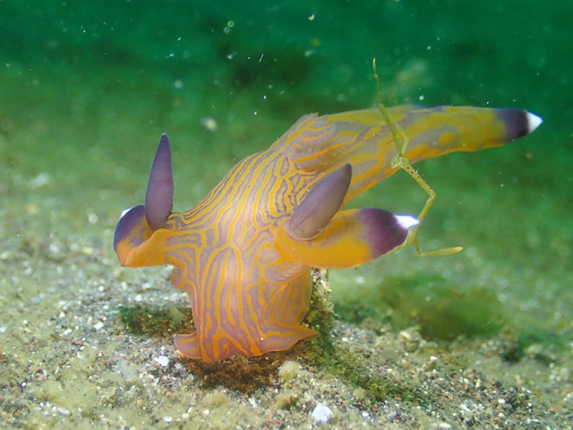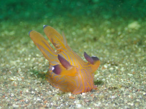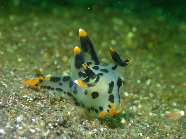 湾内南側のクチナシツノザヤウミウシ。