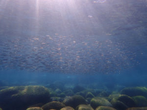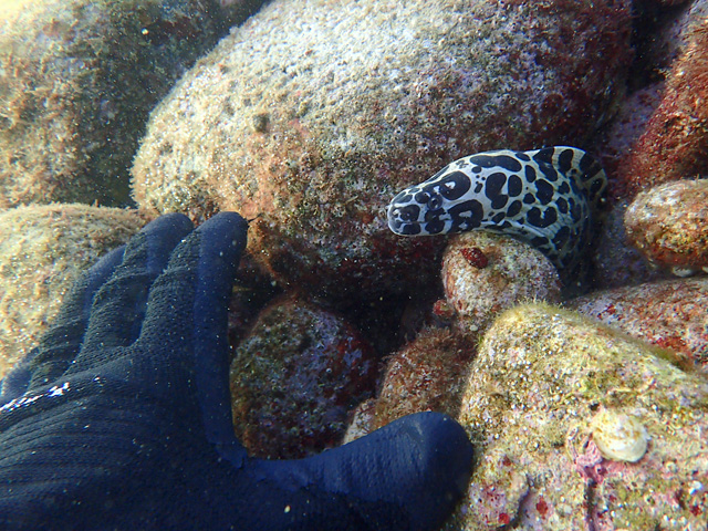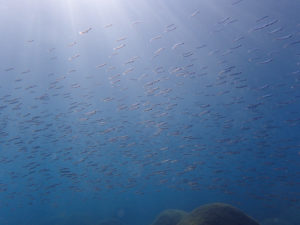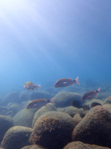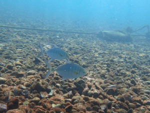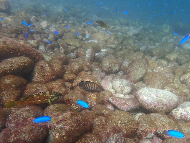 ちょうどゲストさんが来るところだったので海に入れず、ダッシュで北側桟橋のところへ行って、陸上から観察させてもらいました。