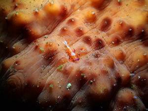 アカオニナマコにウミウシカクレエビが3個体見られました。