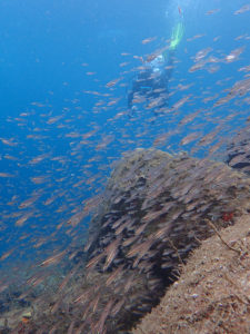 投稿日: 2025年8月11日2025年8月22日8月11日 大瀬崎湾内の生物たち Wannai 4m テンジクダイ類などの幼魚が多くて、浅場は賑やかです(^^) Wannai 12m オオモンカエルアンコウ。 ビーナス漁礁のブイについているとは気づかなかった。。 +30