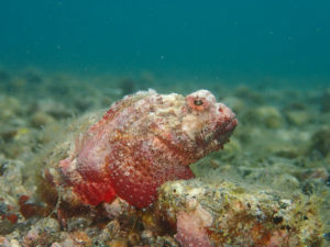 海藻の上を何度も滑っていたヒメサツマカサゴ。
